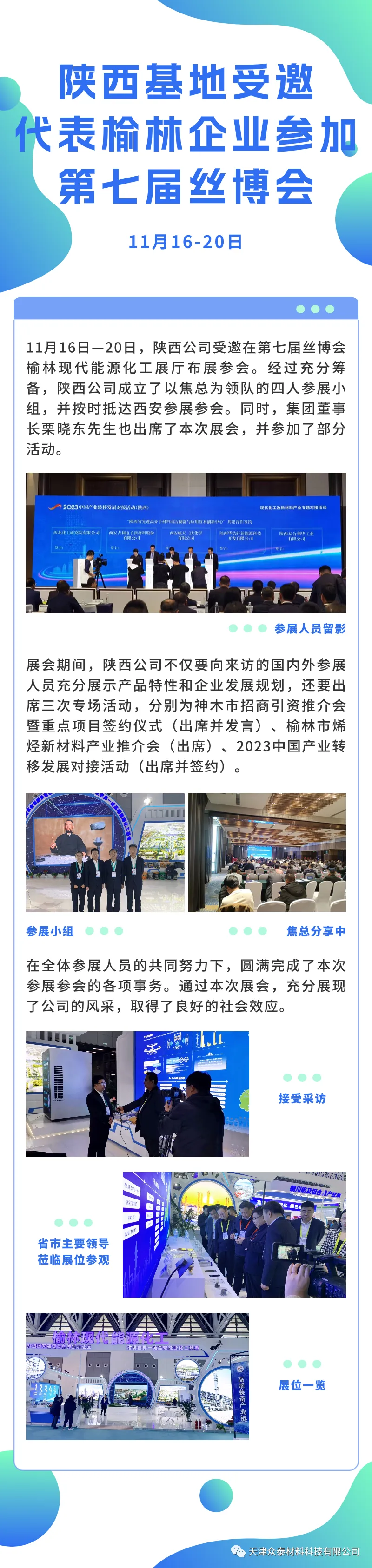 陜西公司受邀在第七屆絲博會(huì),榆林現(xiàn)代能源化工展廳布展參會(huì)。經(jīng)過充分籌備,陜西公司成立了以焦總為領(lǐng)隊(duì)的四人參展小組,并按時(shí)抵西安參加展會(huì)。同時(shí),集團(tuán)董事長栗曉東先生也出席了本次展會(huì),并參加了部分活動(dòng)。
